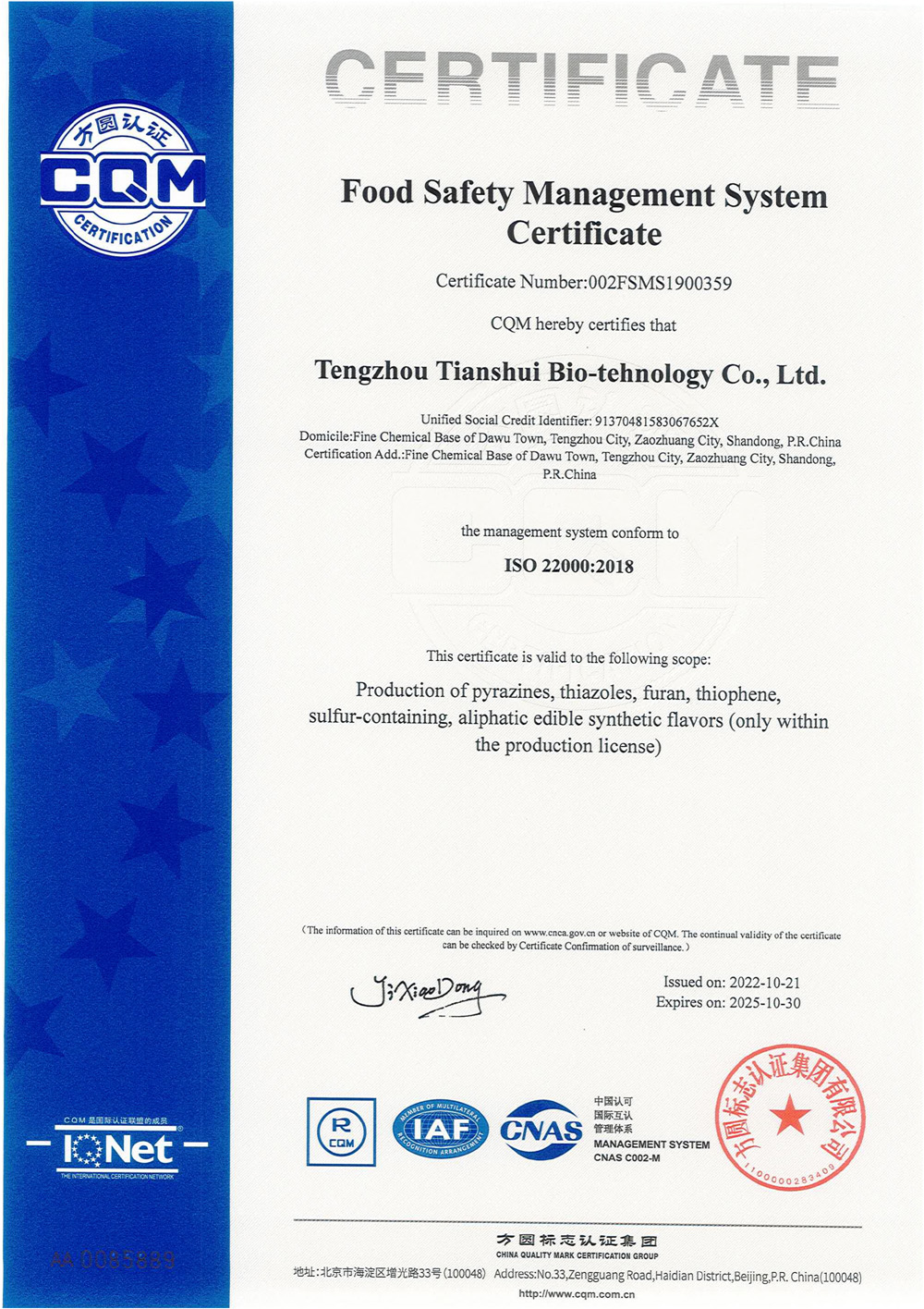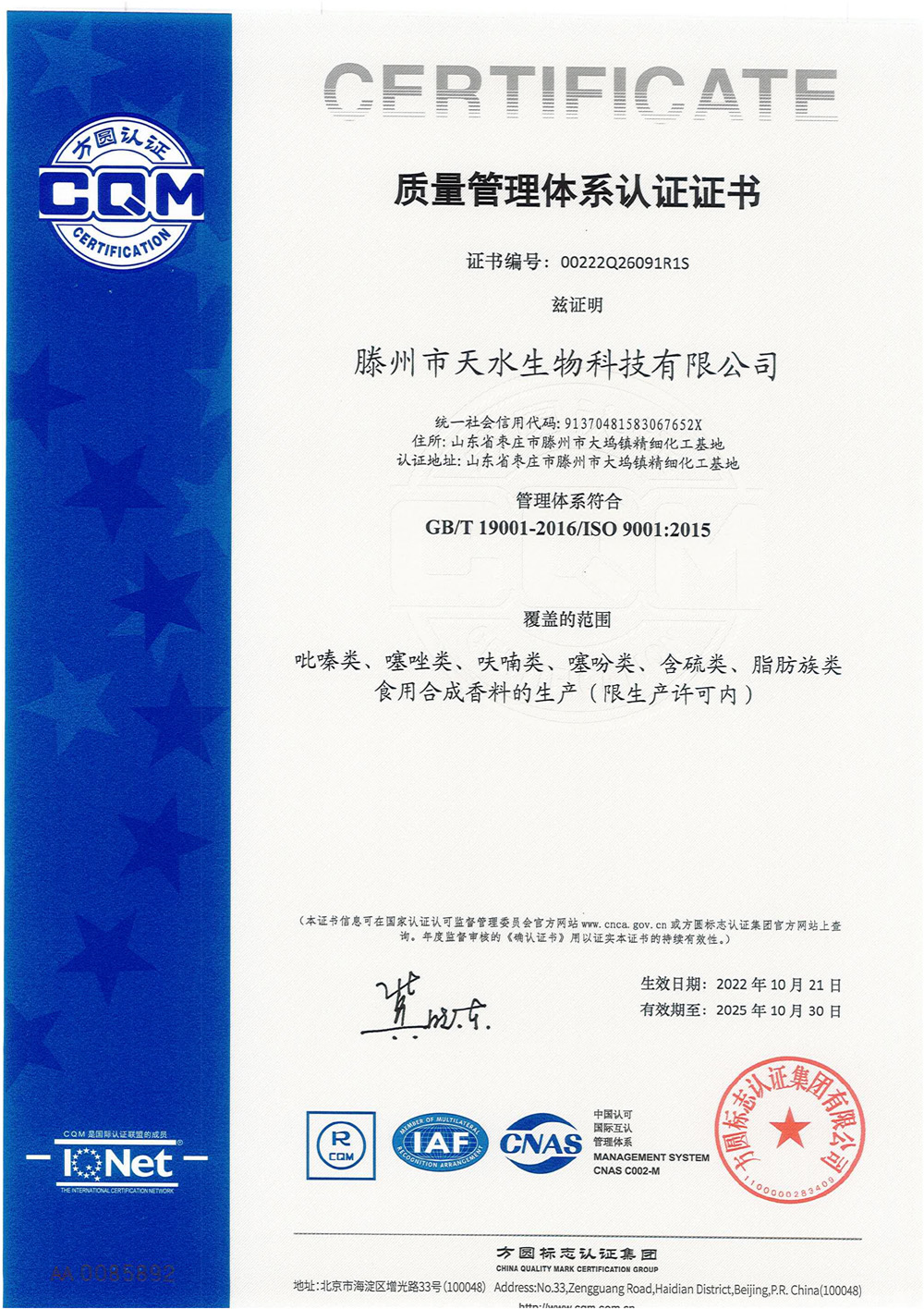 滕州市天水生物科技有限公司成立于2011年9月,是目前國內(nèi)雜環(huán)類合成食品香料、日化香料和醫(yī)藥中間體生產(chǎn)經(jīng)營的綜合性企業(yè)。坐落于山東省滕州市生物醫(yī)藥產(chǎn)業(yè)基地,總投資5000余萬元,占地面積約30000平方米,員工百余人。公司先后被評為高新技術(shù)企業(yè)、專精特新中小企業(yè)、科技型中小企業(yè),建有市級重點實驗室1處,并先后獲得ISO9001質(zhì)量體系認證、ISO22000食品安全體系認證、kosher認證和Halal認證。是香精香料及食品配料協(xié)會會員單位及滕州市中小企業(yè)協(xié)會理事單位。